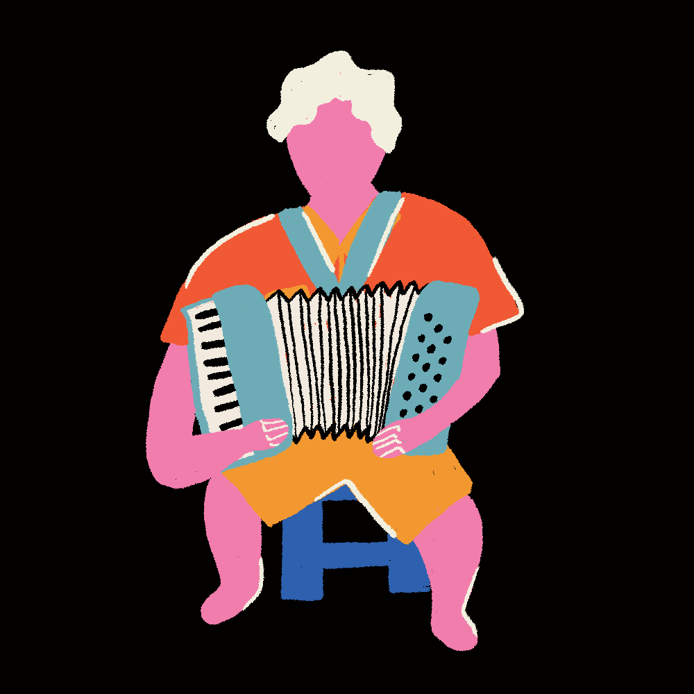 Inspirada em um forró pé de serra, cheia de ilustrações de casais dançando, instrumentos e claro, da banda tocando. Feita em duas colorações vibrantes, com uma versão de fundo escuro e outra de fundo claro.